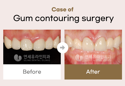 Gum contouring surgery B&A > Before & After